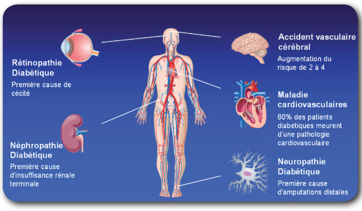 Le taux élevé de sucre dans le sang pendant plusieurs années entraîne des complications très importantes.